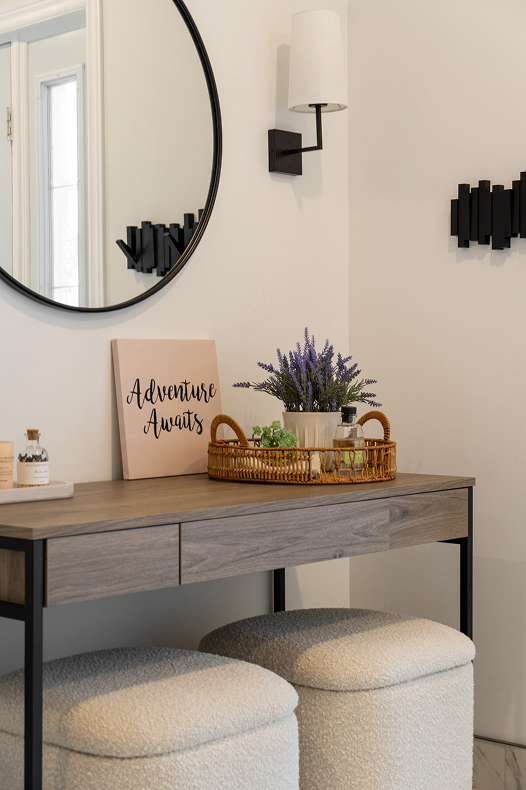 Project Chablis was a full-service furnishing design project that focused on designing the space in a new home and procuring décor and furnishings for a young family who relocated from San Francisco. Creating a warm, cozy and welcoming home that represented the clients’ lifestyle and history was key. I approached the design of the space by layering different textures and tone-on-tone colour palettes with accent colours and textures that can change as this young family grows. With a well-thought-out design and curated styling, the house is transformed into a home that truly reflects their life story.