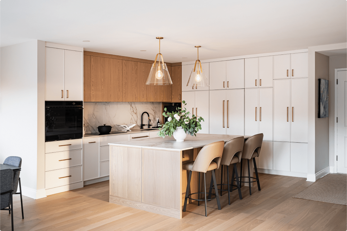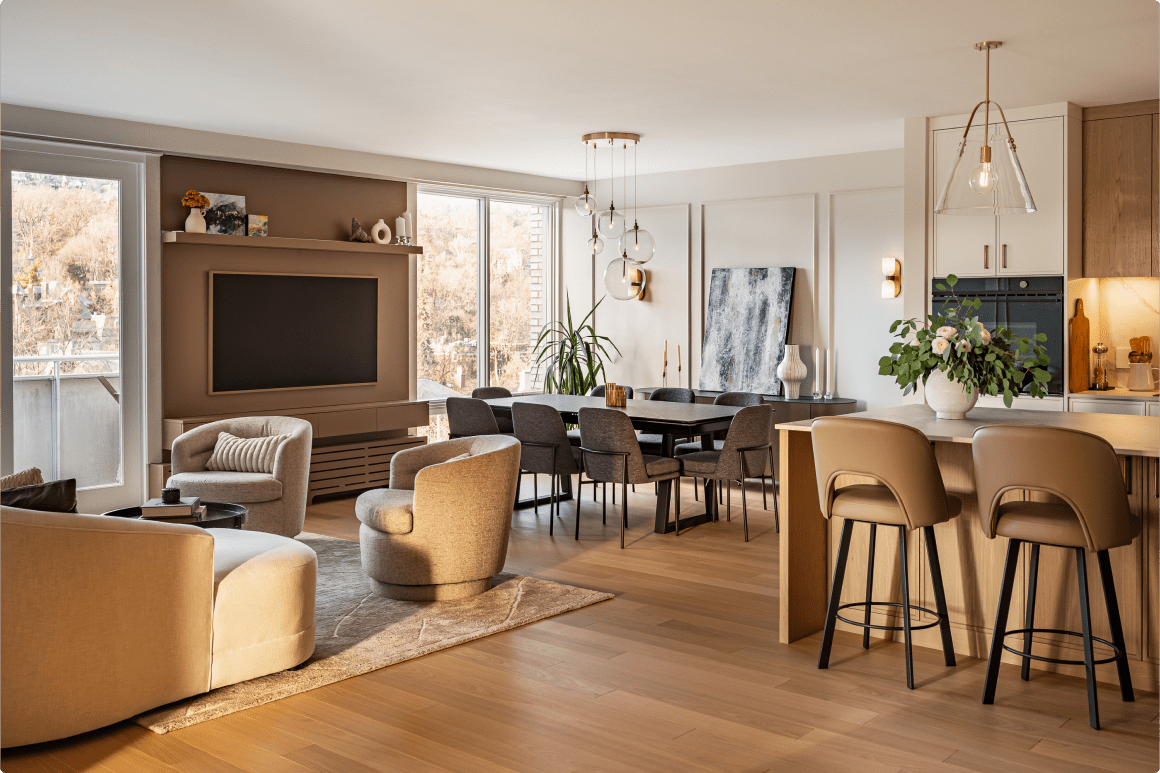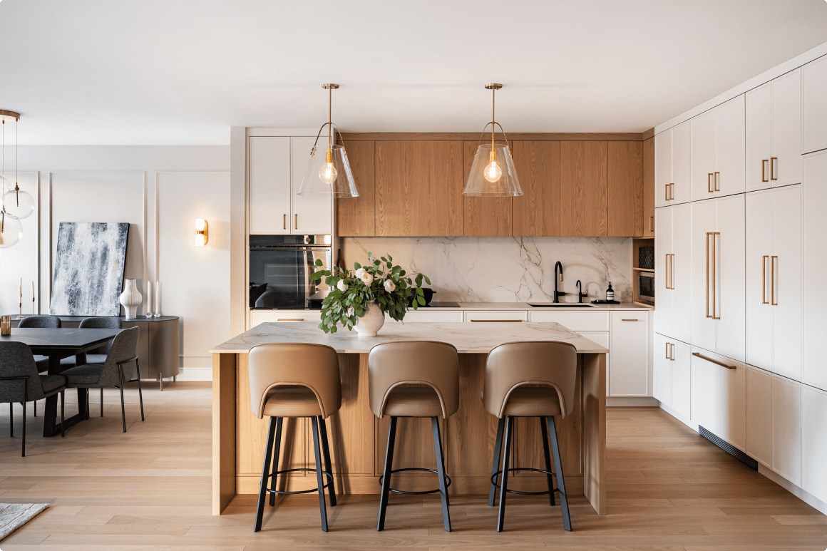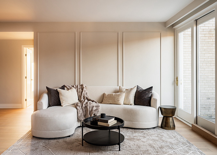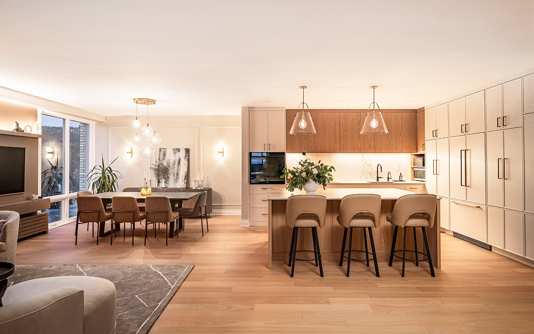 Project Clarke is a complete condo renovation, starting with a full demolition of the space down to the final selection of furniture and décor. The initial design focus was to create a chic contemporary home that serves as a city escape from their primary home in the country. Every room was redesigned to improve functionality and visual flow, with a focus on an open concept living for entertaining. The result is a home defined by elevated simplicity, clean lines, and a refined approach to modern urban living.
