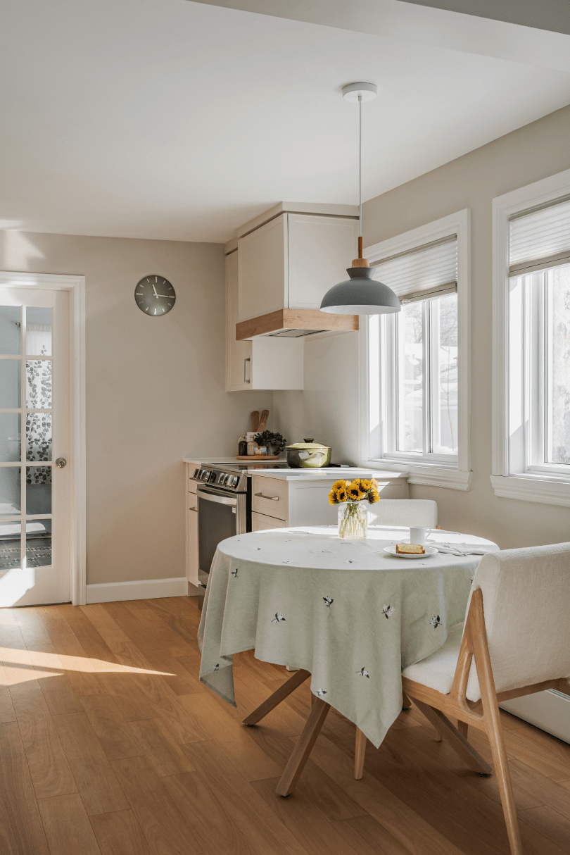 Project St. Cyr was a full-service kitchen and bathroom renovation. The existing kitchen had an awkward layout and offered very limited storage. To improve flow and bring more natural light into the space, we removed a load-bearing wall to create an open layout and introduced custom cabinetry to maximize functionality and storage.