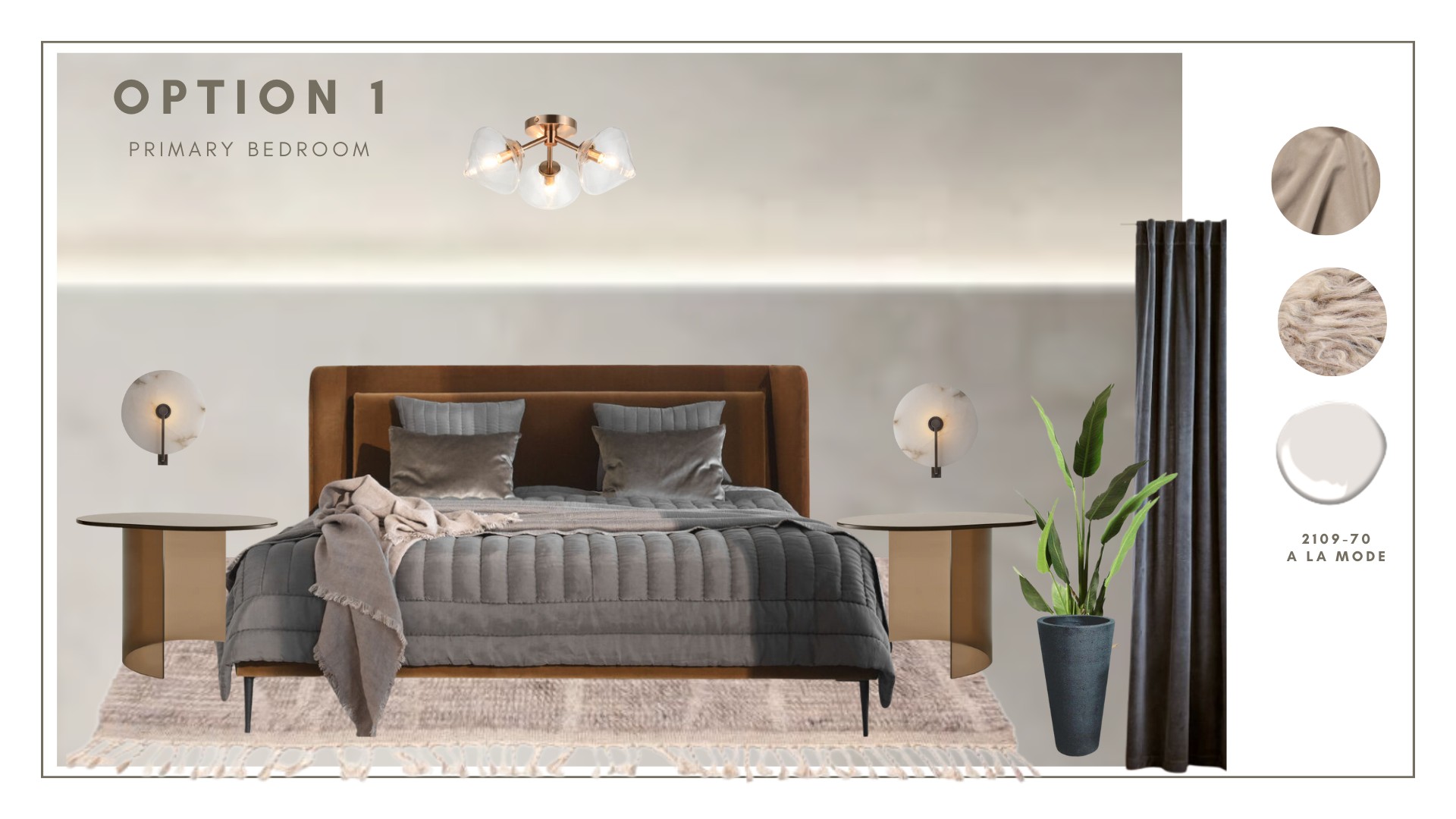 From there, we will produce floor plans, furniture layouts, finish plans, a mood board and a shopping list with direct links for the project.